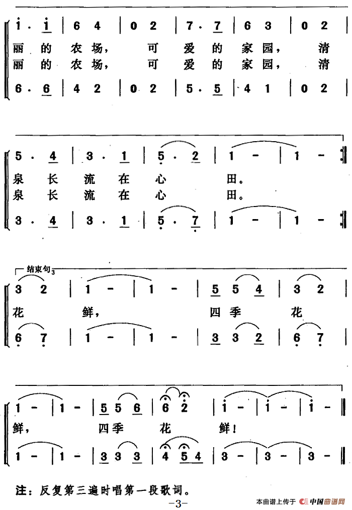 关于《美丽的农场,可爱的家园》曲谱的评论
