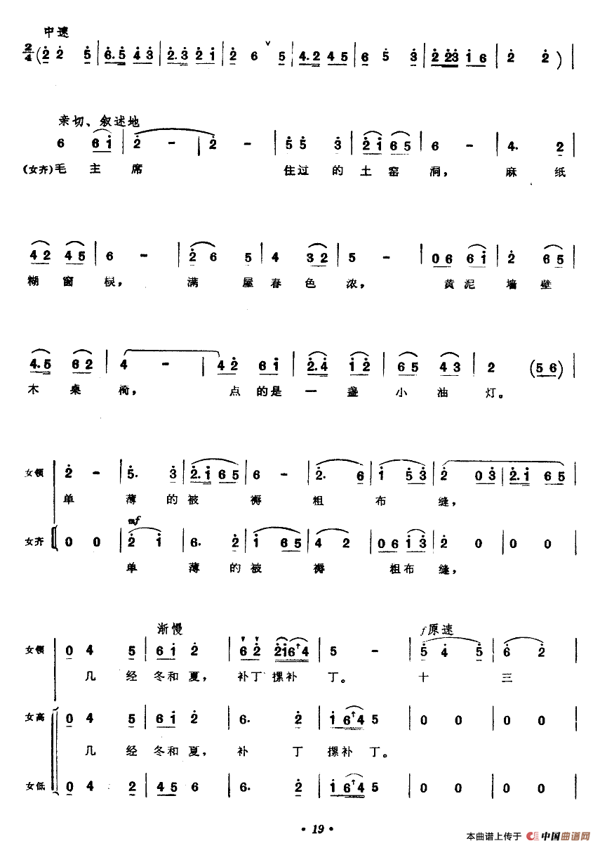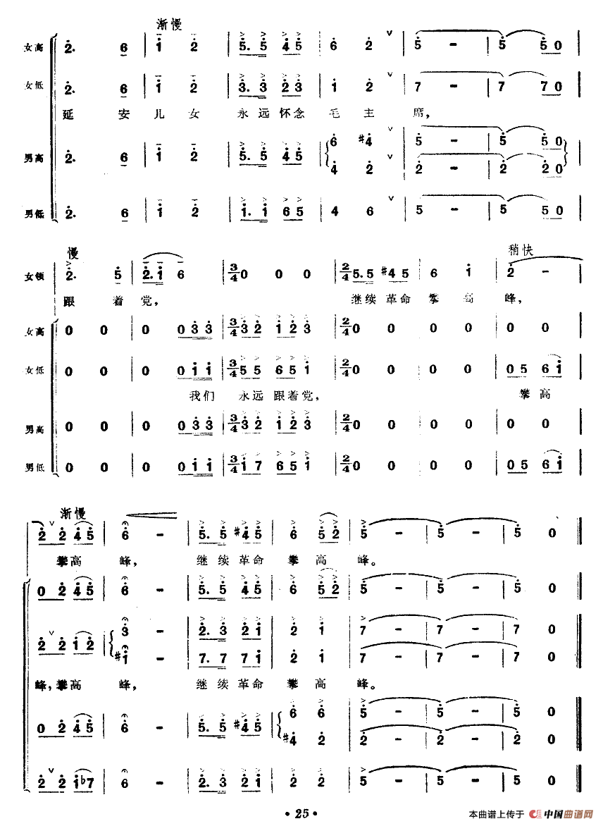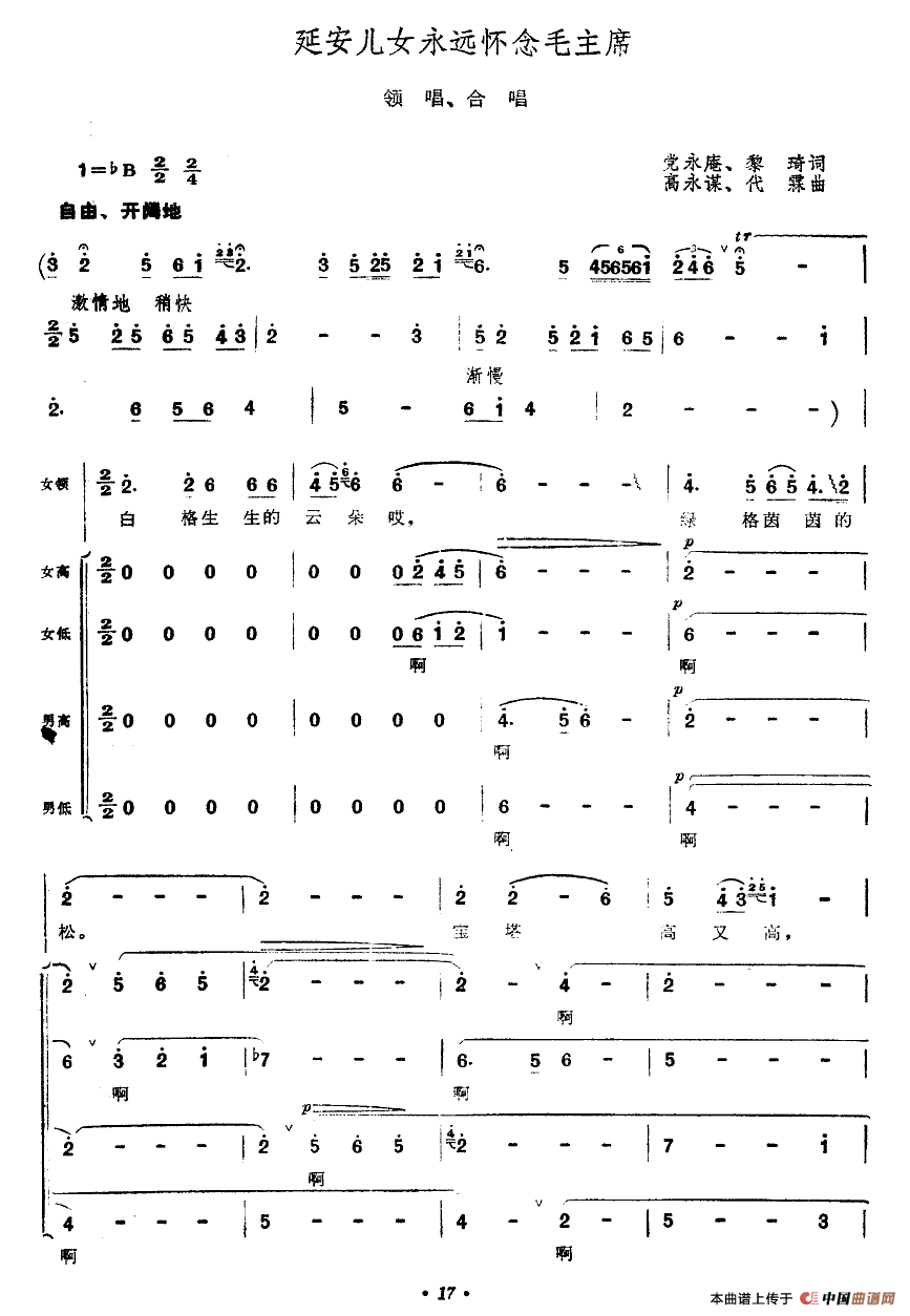 关于《延安儿女永远怀念毛主席》曲谱的评论