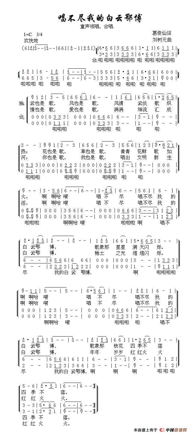 关于《唱不尽我的白云鄂博》曲谱的评论