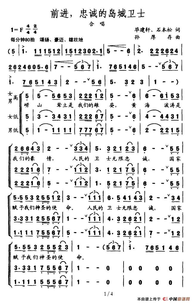 关于《前进,忠诚的岛城卫士》曲谱的评论