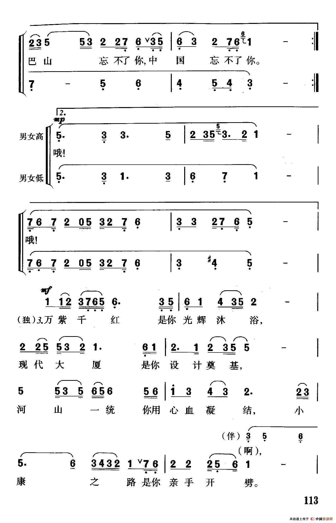 致谢:《中国曲谱网》衷心感谢作者老师馈赠原版歌谱!
