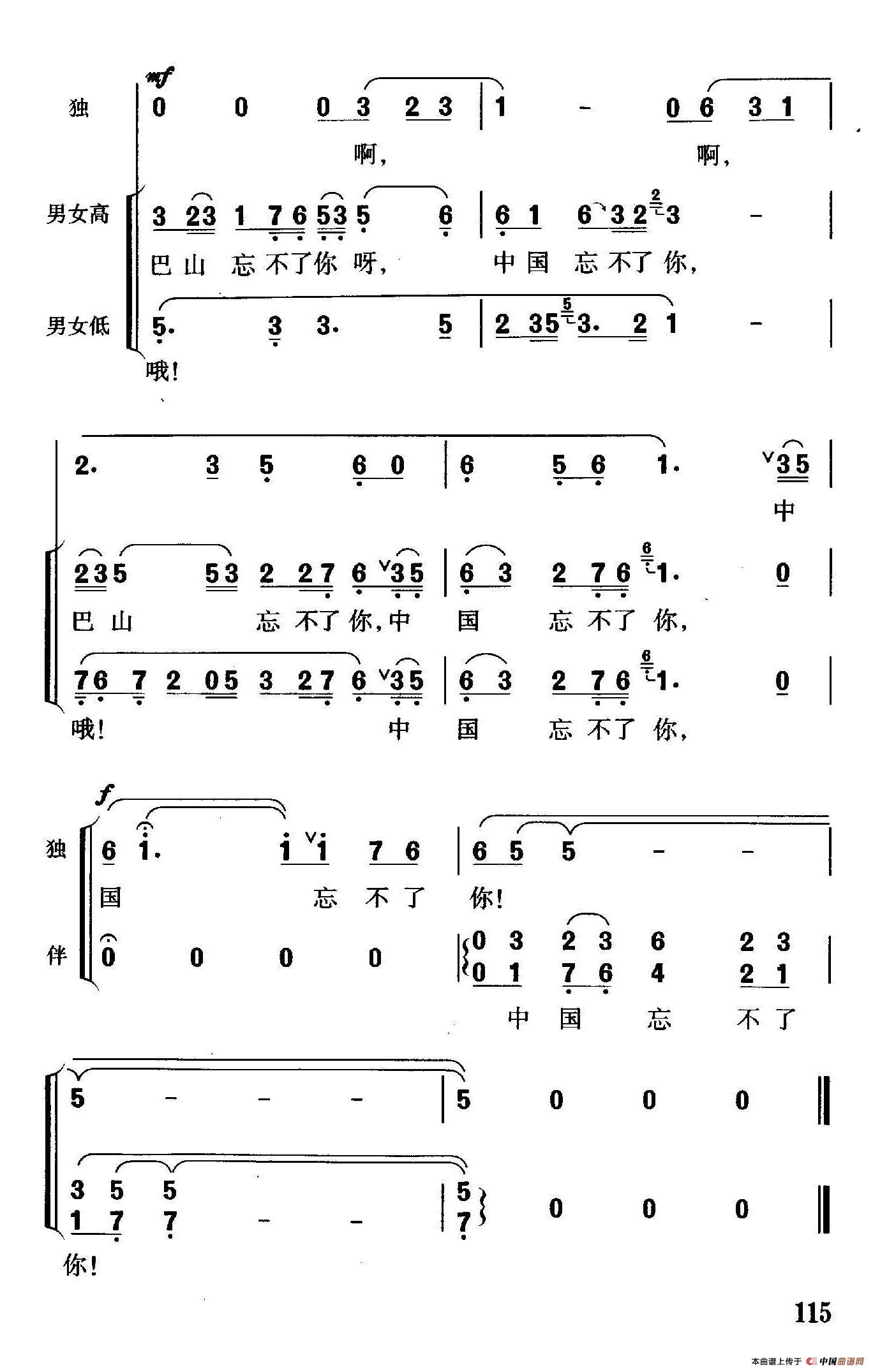 关于《中国忘不了你》曲谱的评论