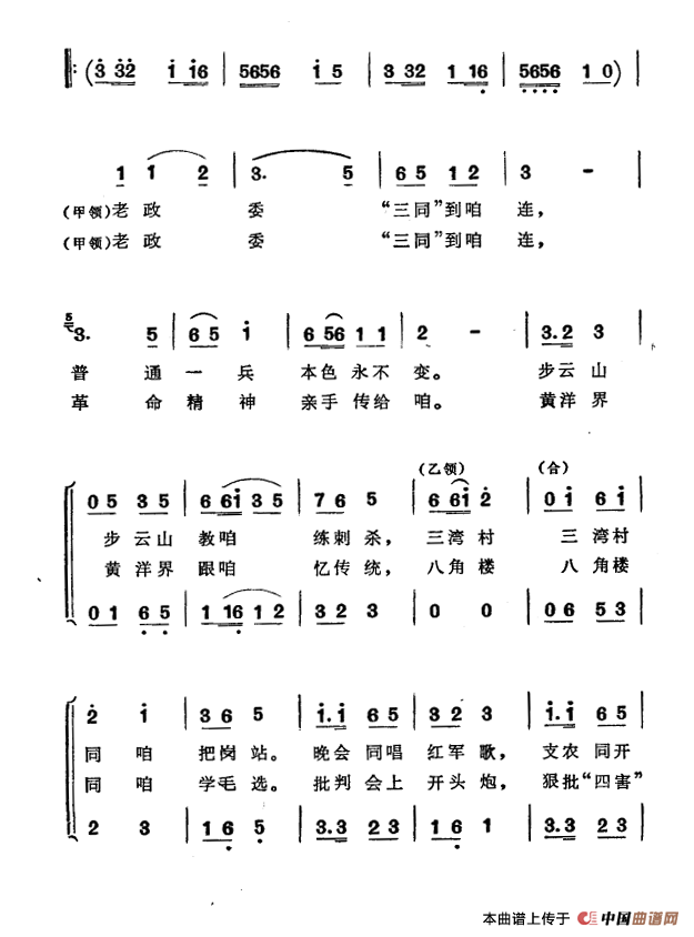 关于《战士野营进三湾》曲谱的评论