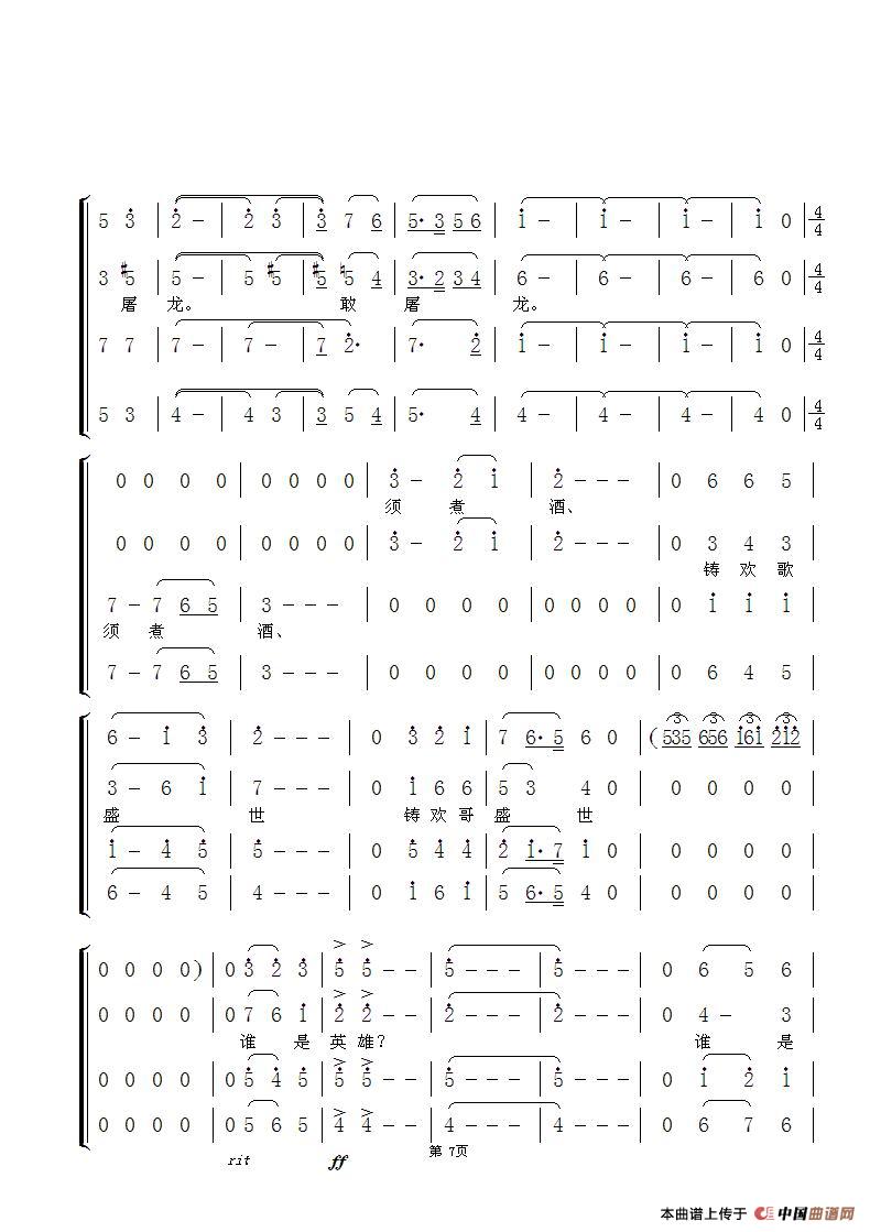 提示:在曲谱图片上单击右键,选择"图片另存为..."即可将曲谱保存到您的电脑中,打印时候可将图片插入到WORD中,调整合适大小打印即可。