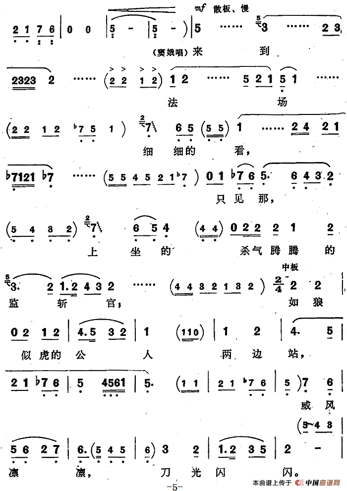 关于《满城争说窦娥冤》曲谱的评论