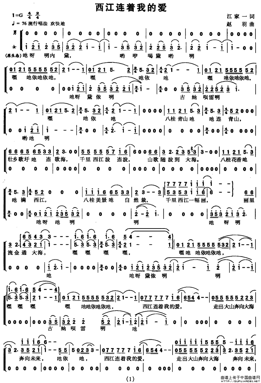 关于《西江连着我的爱》曲谱的评论