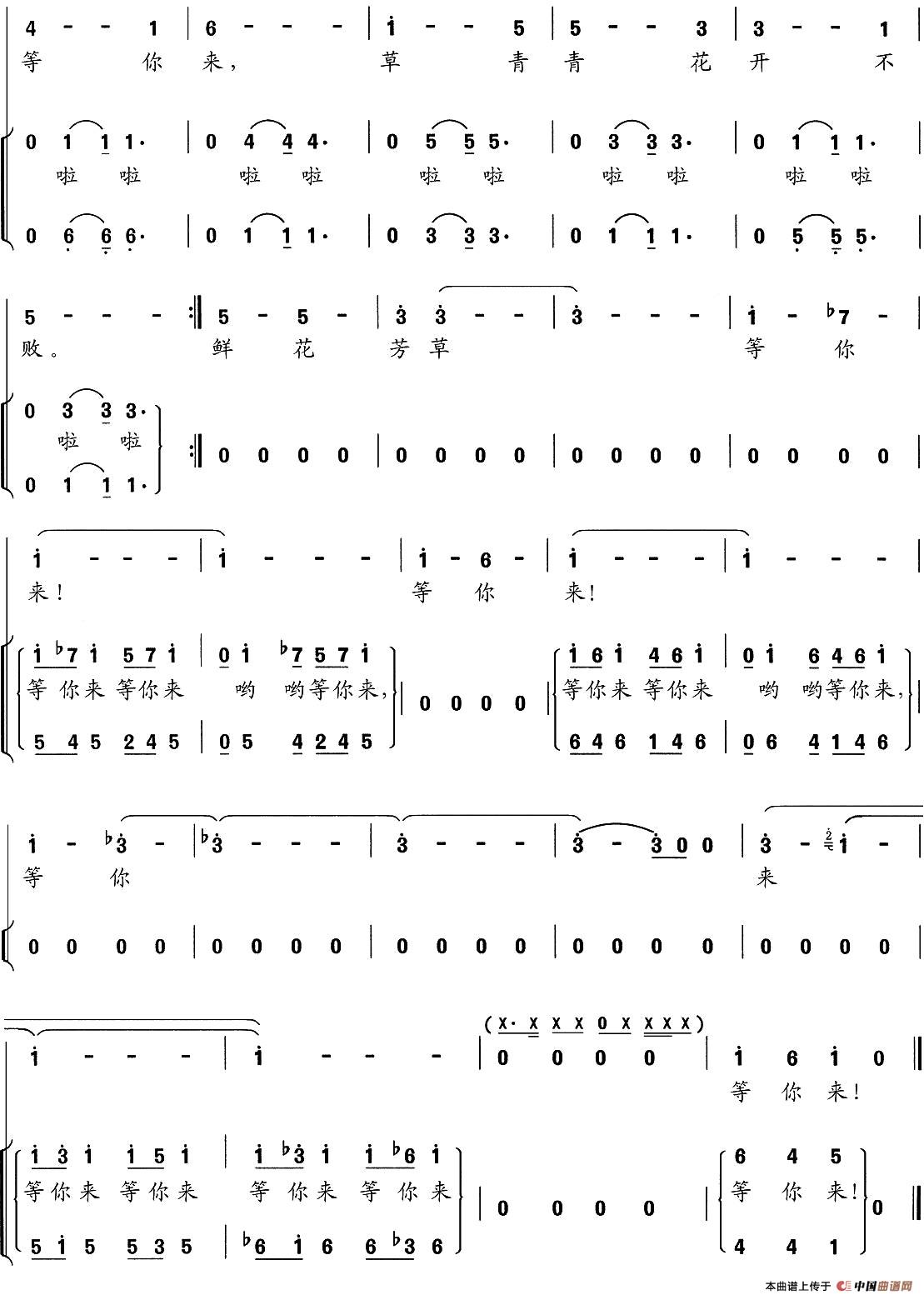 提示:在曲谱图片上单击右键,选择“图片另存为...”即可将曲谱保存到您的电脑中,打印时候可将图片插入到WORD中,调整合适大小打印即可。