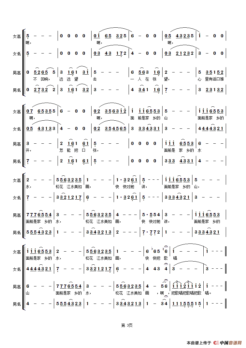 提示:在曲谱图片上单击右键,选择“图片另存为...”即可将曲谱保存到您的电脑中,打印时候可将图片插入到WORD中,调整合适大小打印即可。