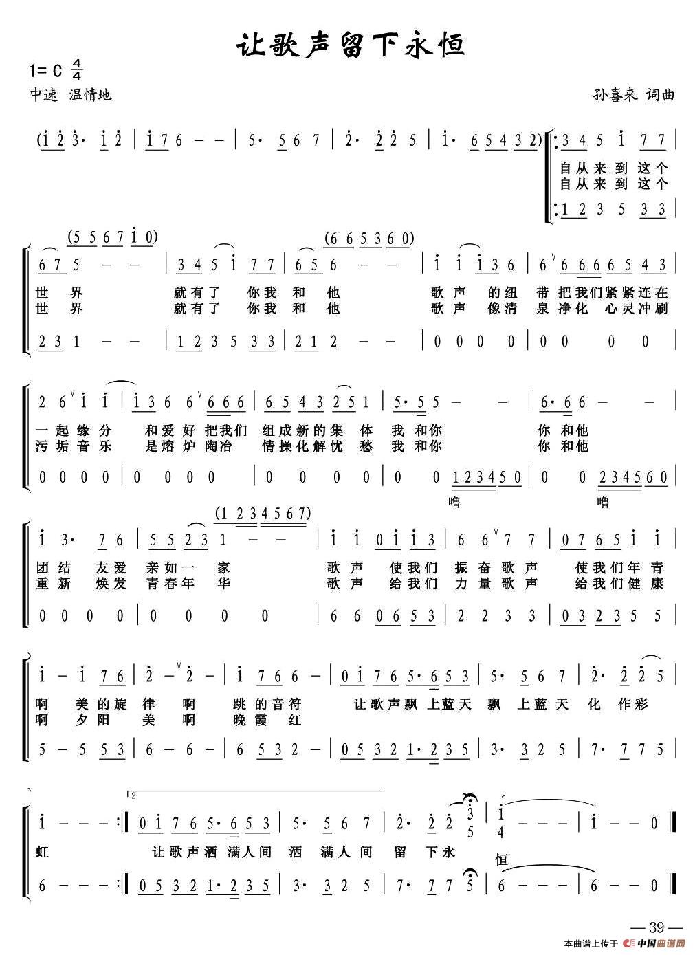 关于《让歌声留下永恒》曲谱的评论
