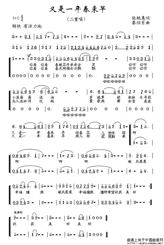 关于《又是一年春来早》曲谱的评论