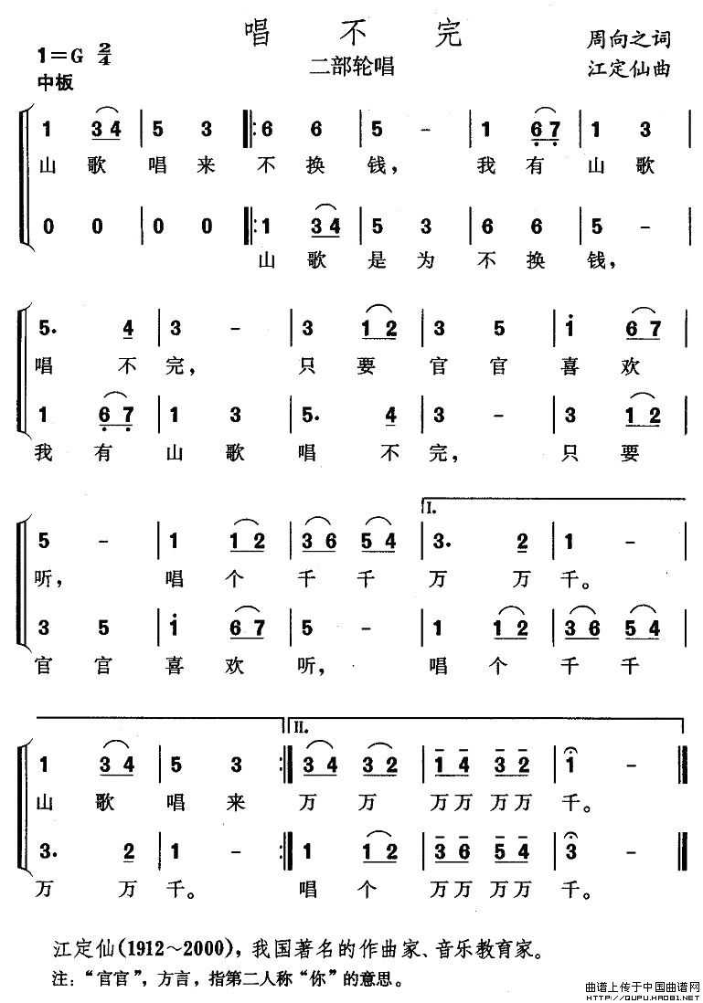 唱不完(二部轮唱)