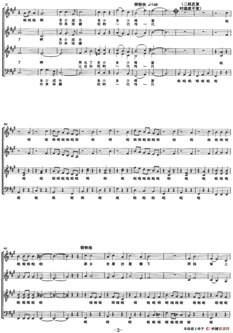 提示:在曲谱图片上单击右键,选择“图片另存为...”即可将曲谱保存到您的电脑中,打印时候可将图片插入到WORD中,调整合适大小打印即可。