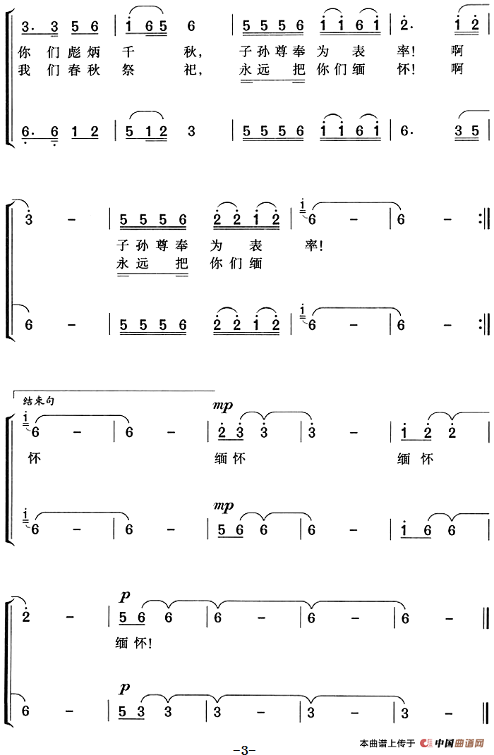提示:在曲谱图片上单击右键,选择“图片另存为...”即可将曲谱保存到您的电脑中,打印时候可将图片插入到WORD中,调整合适大小打印即可。