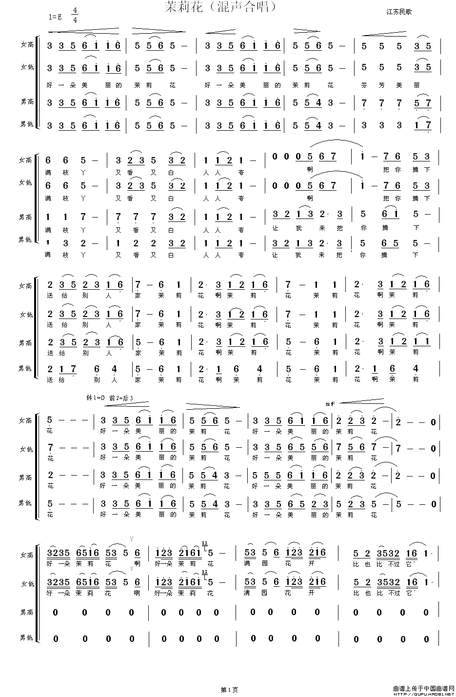 茉莉花(混声合唱、葫芦岛老干部合唱团演唱稿)