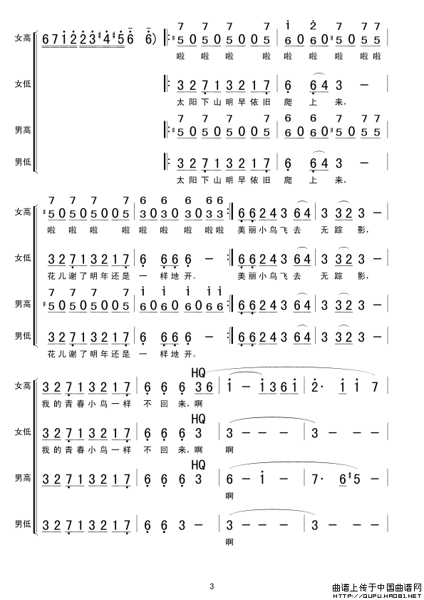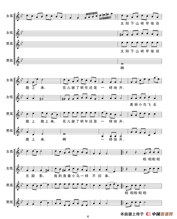 提示:在曲谱图片上单击右键,选择“图片另存为...”即可将曲谱保存到您的电脑中,打印时候可将图片插入到WORD中,调整合适大小打印即可。