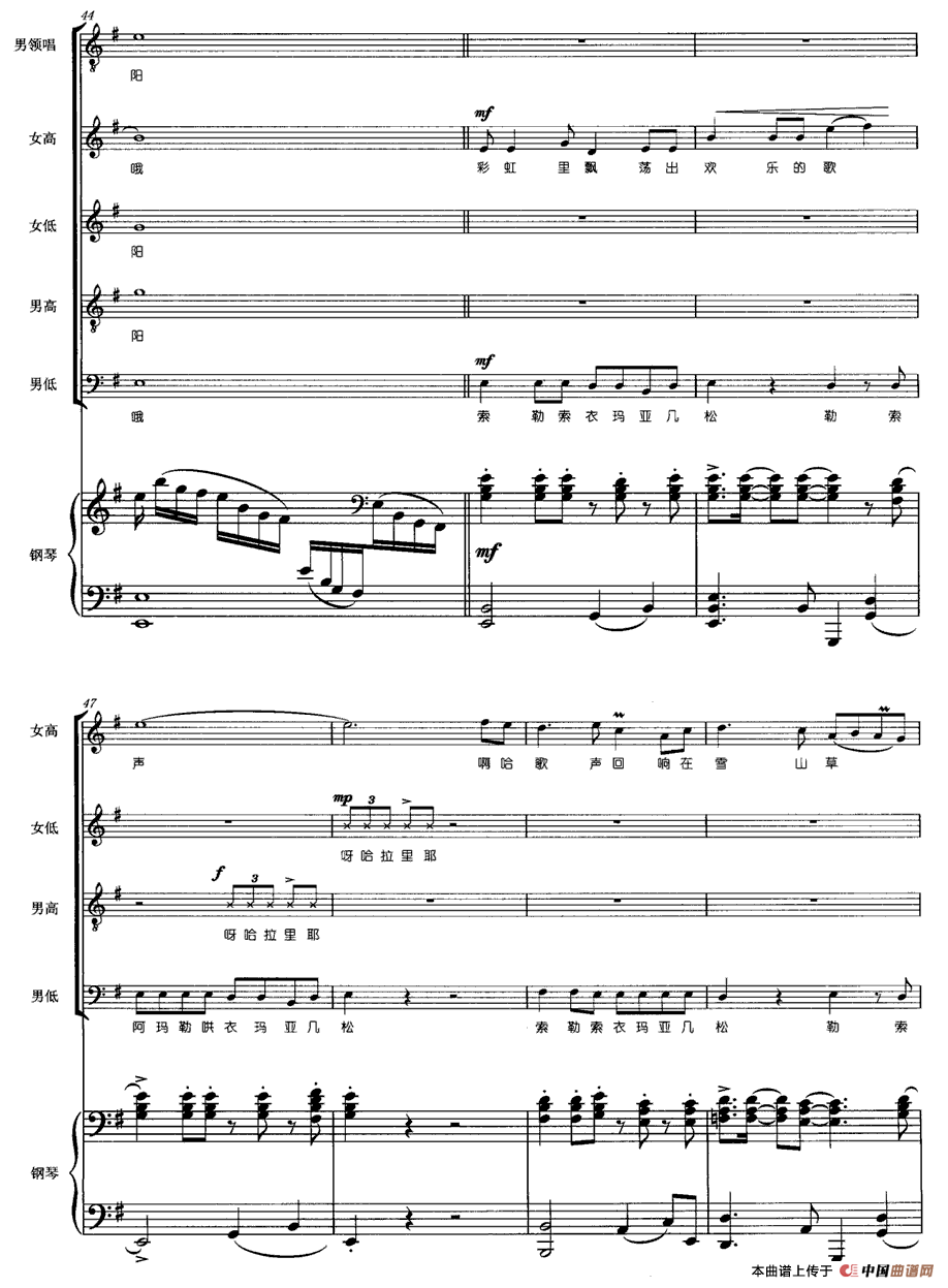 关于《高原彩虹》曲谱的评论