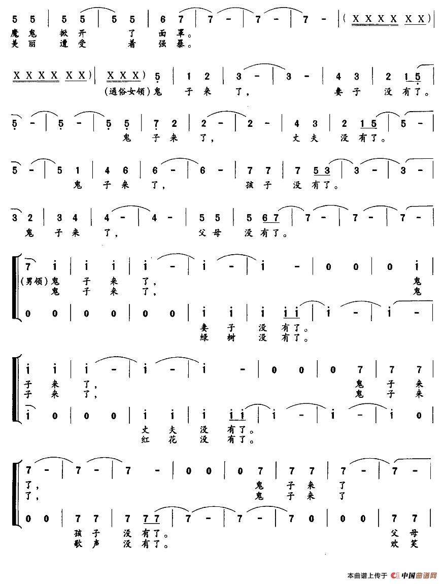 鬼子来了,歌声没有了,鬼子来了,欢笑没有了,