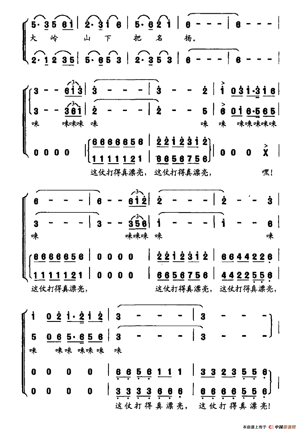 提示:在曲谱图片上单击右键,选择“图片另存为...”即可将曲谱保存到您的电脑中,打印时候可将图片插入到WORD中,调整合适大小打印即可。