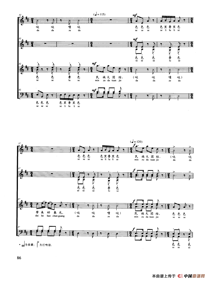 提示:在曲谱图片上单击右键,选择“图片另存为...”即可将曲谱保存到您的电脑中,打印时候可将图片插入到WORD中,调整合适大小打印即可。