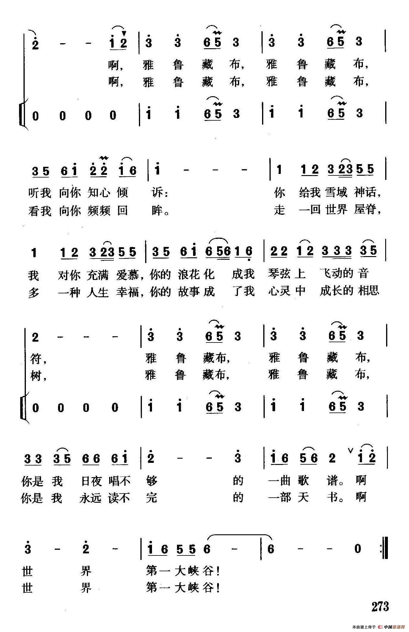 关于《雅鲁藏布》曲谱的评论