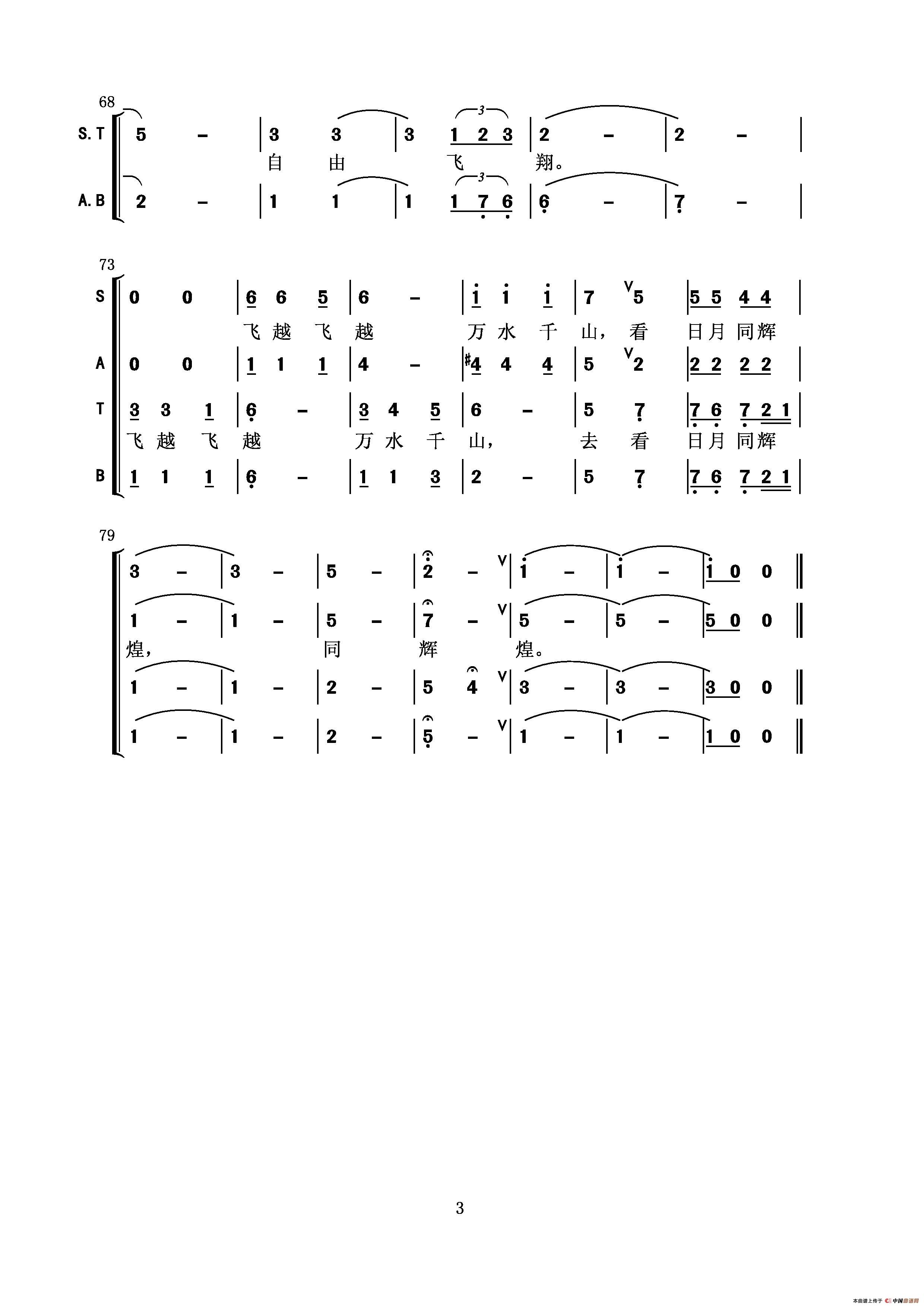 提示:在曲谱图片上单击右键,选择“图片另存为...”即可将曲谱保存到您的电脑中,打印时候可将图片插入到WORD中,调整合适大小打印即可。