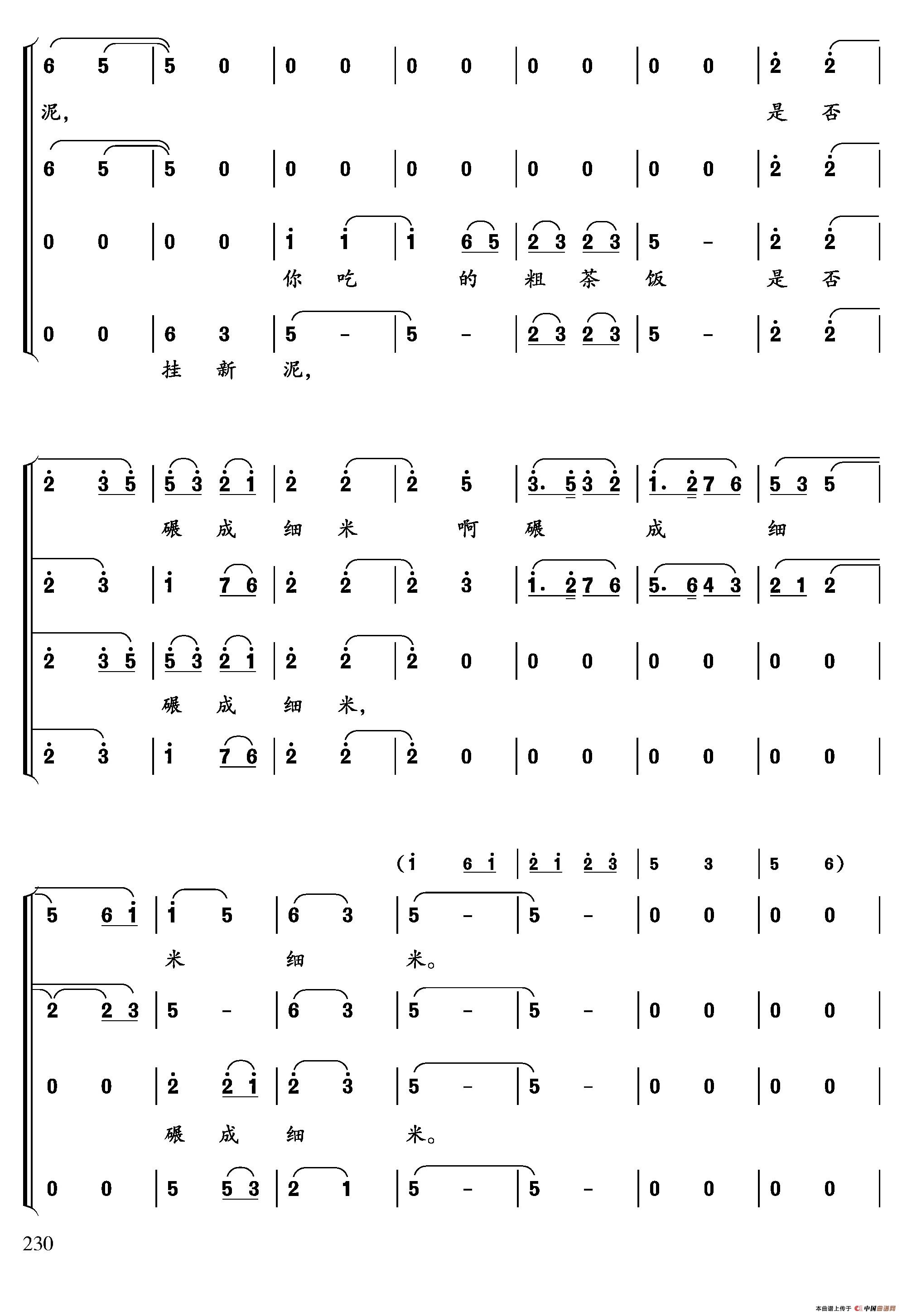 关于《天下乡亲》曲谱的评论