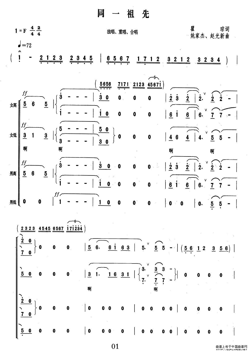 同一祖先(瞿琮词 姚家杰、赵光新曲)