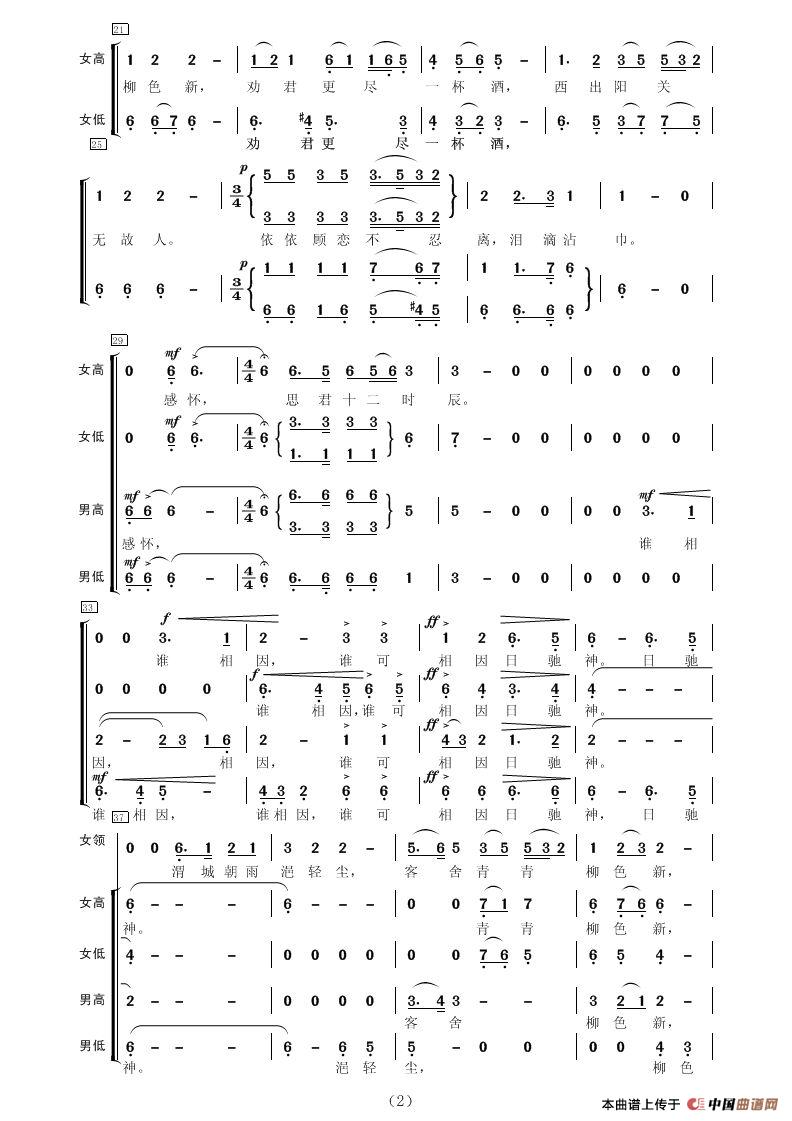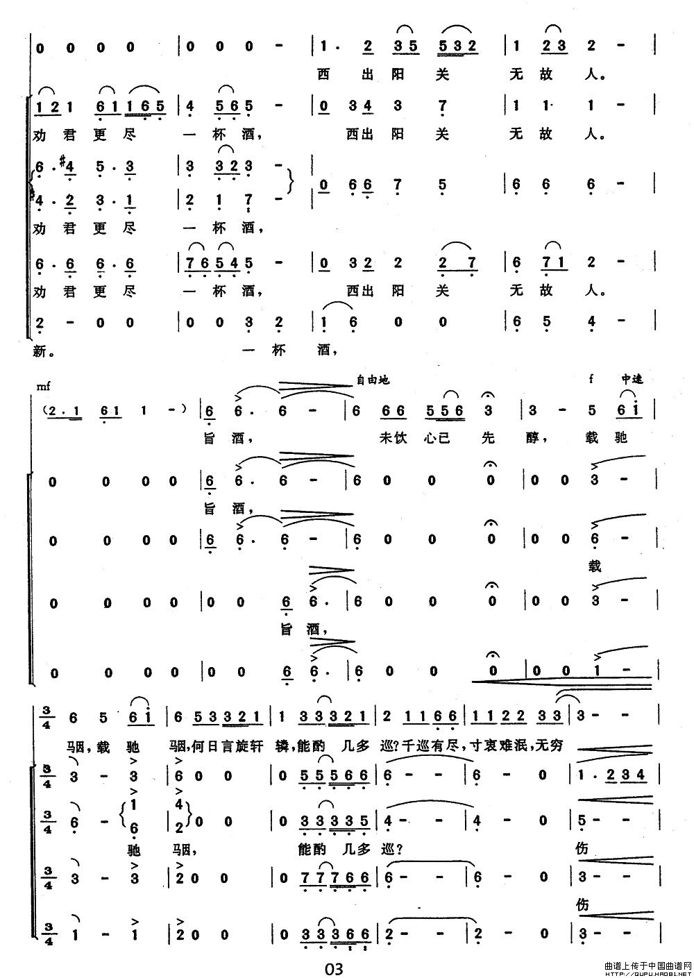 阳关三叠此合唱谱和五线谱上有误! [回复]