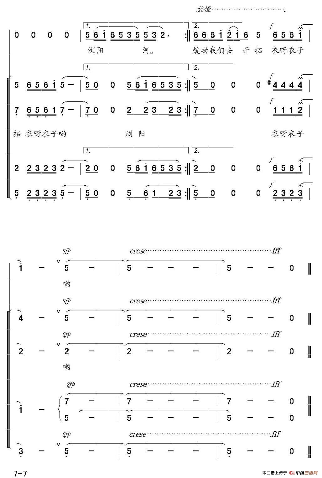 关于《又唱浏阳河》曲谱的评论