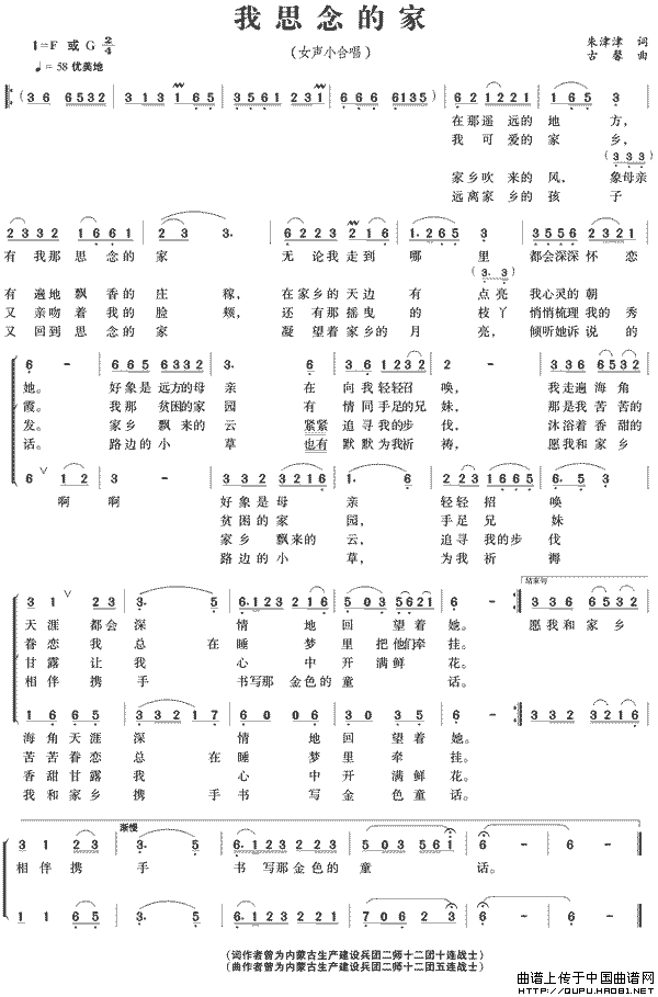 关于《我思念的家》曲谱的评论