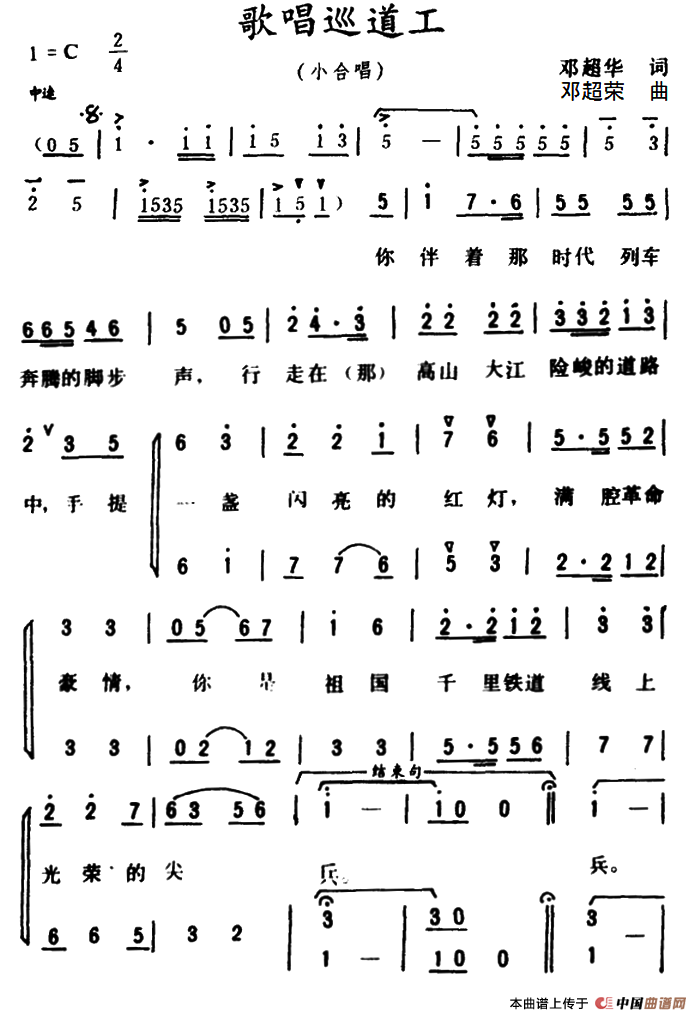 关于《歌唱巡道工》曲谱的评论