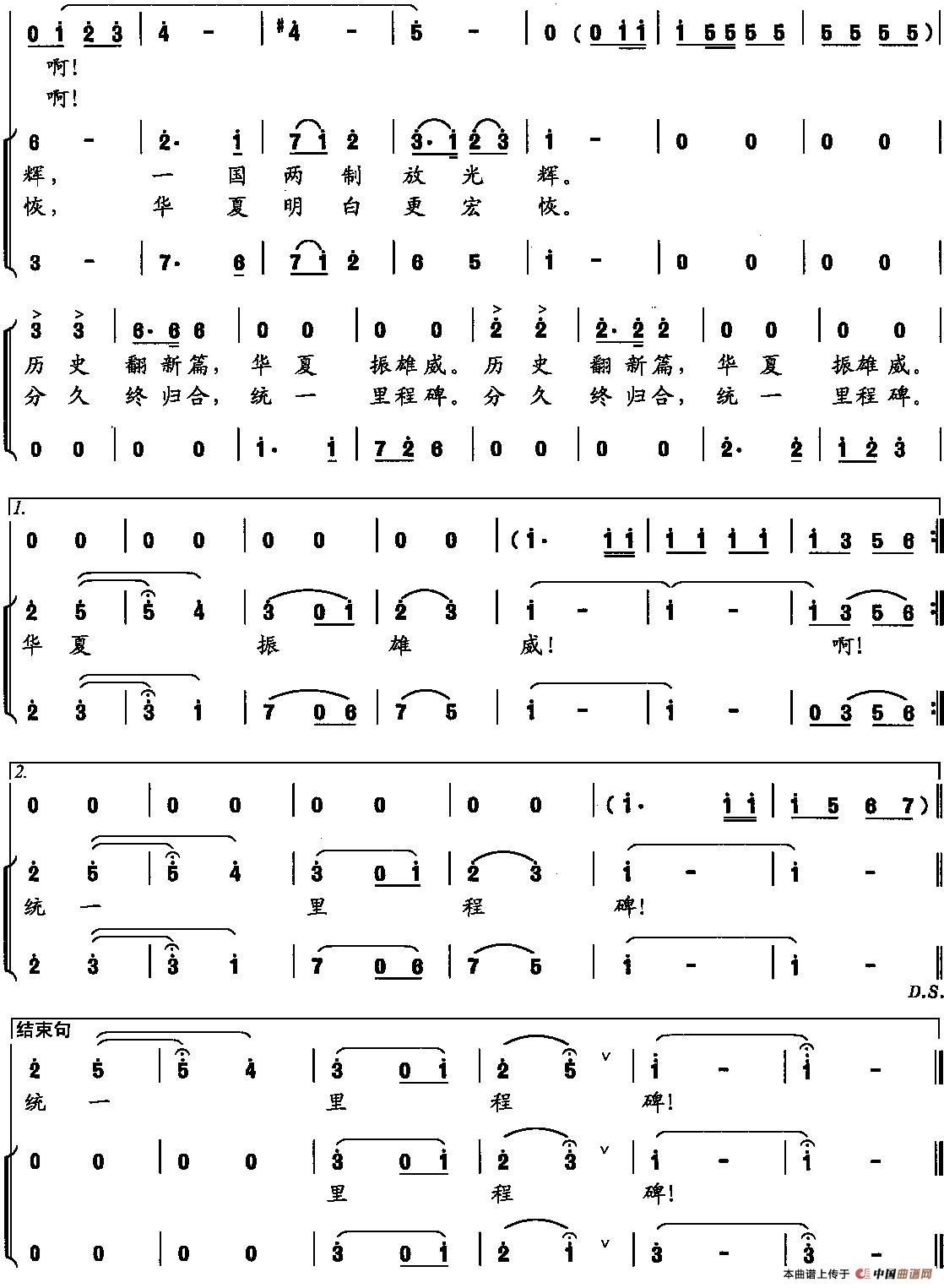 关于《颂香港回归》曲谱的评论