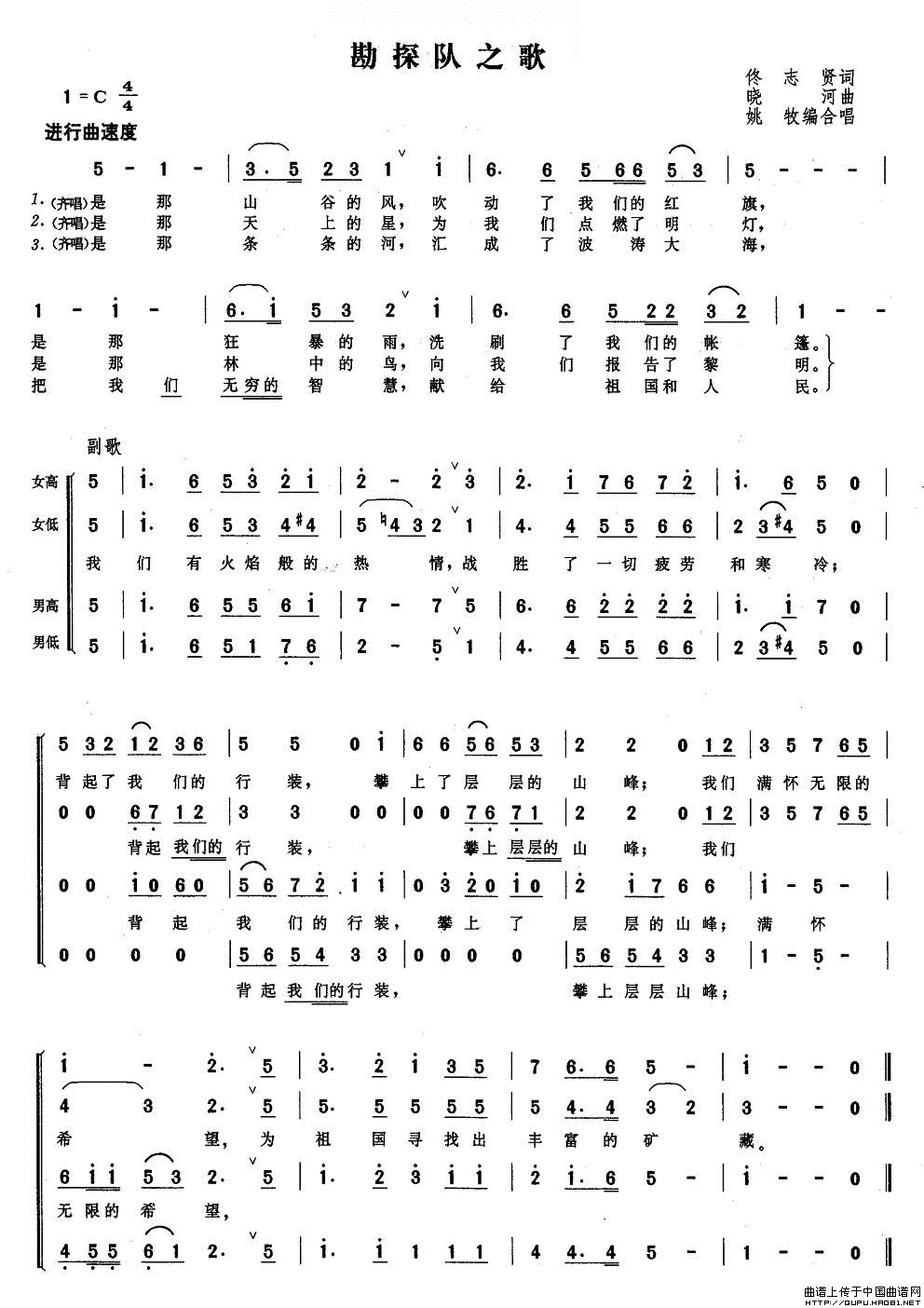 关于《勘探队之歌》曲谱的评论