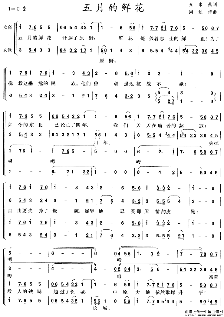五月的鲜花开遍了原野,鲜花掩盖着志士的鲜血,