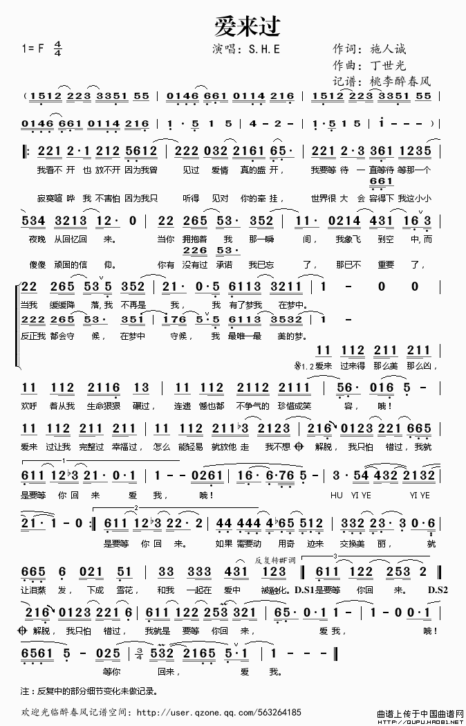 关于《爱来过》曲谱的评论