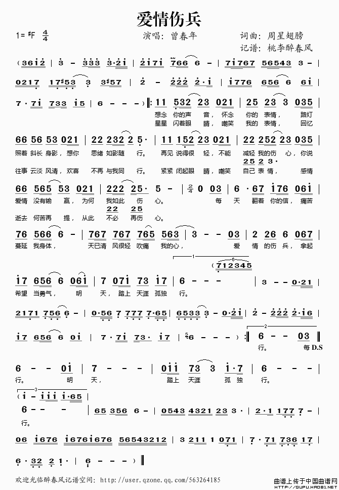 作词:周星翅膀   作曲:周星翅膀   演唱(奏):曾春年   格式:简谱   来源:桃李醉春风记谱   上传:桃李醉春风   日期:2010-04-27   浏览次数: