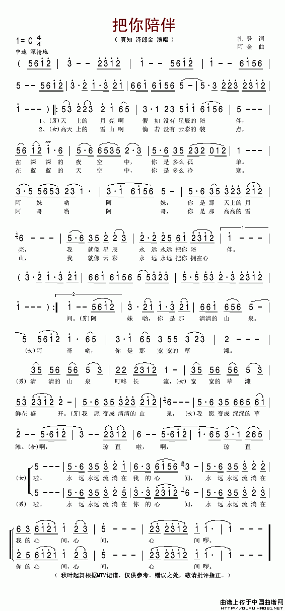 提示:在曲谱图片上单击右键,选择“图片另存为...”即可将曲谱保存到您的电脑中,打印时候可将图片插入到WORD中,调整合适大小打印即可。