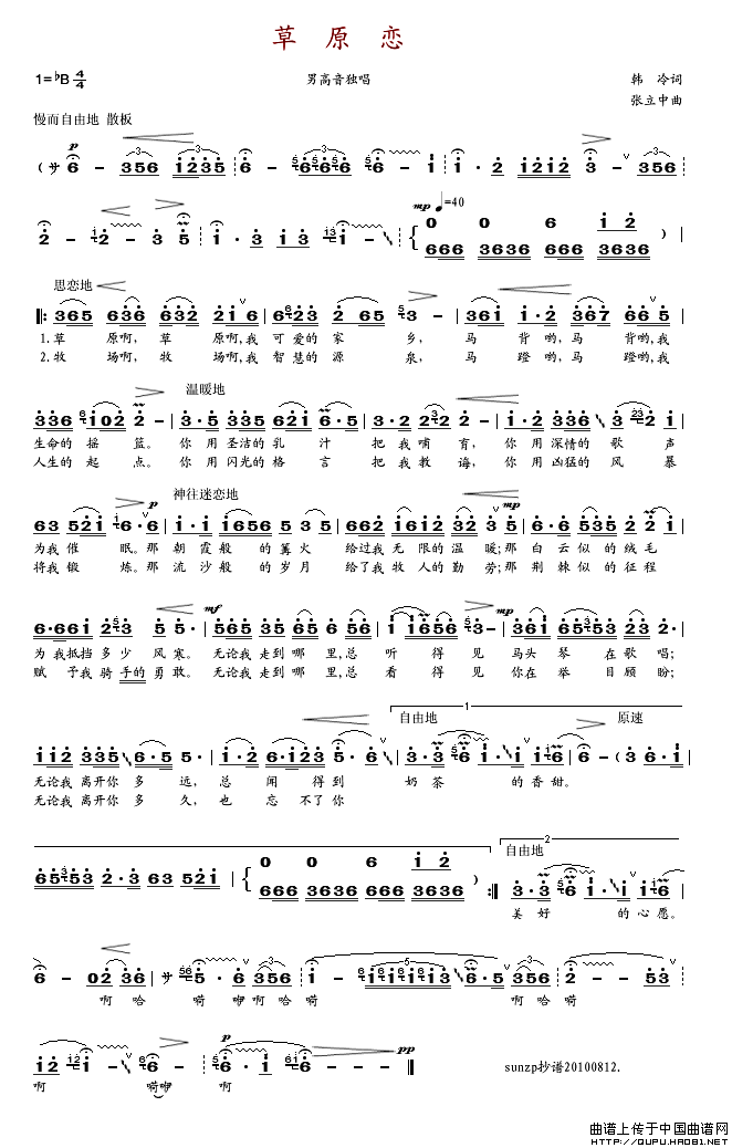 《草原恋》文本歌词