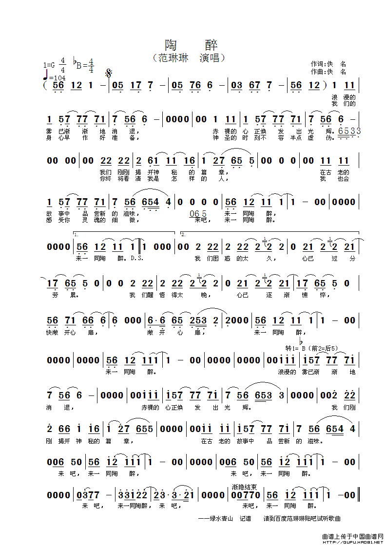 关于《陶醉》曲谱的评论
