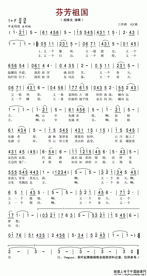 提示:在曲谱图片上单击右键,选择“图片另存为...”即可将曲谱保存到您的电脑中,打印时候可将图片插入到WORD中,调整合适大小打印即可。