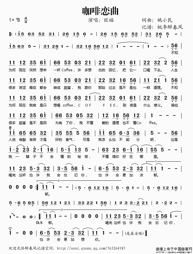 关于《咖啡恋曲》曲谱的评论