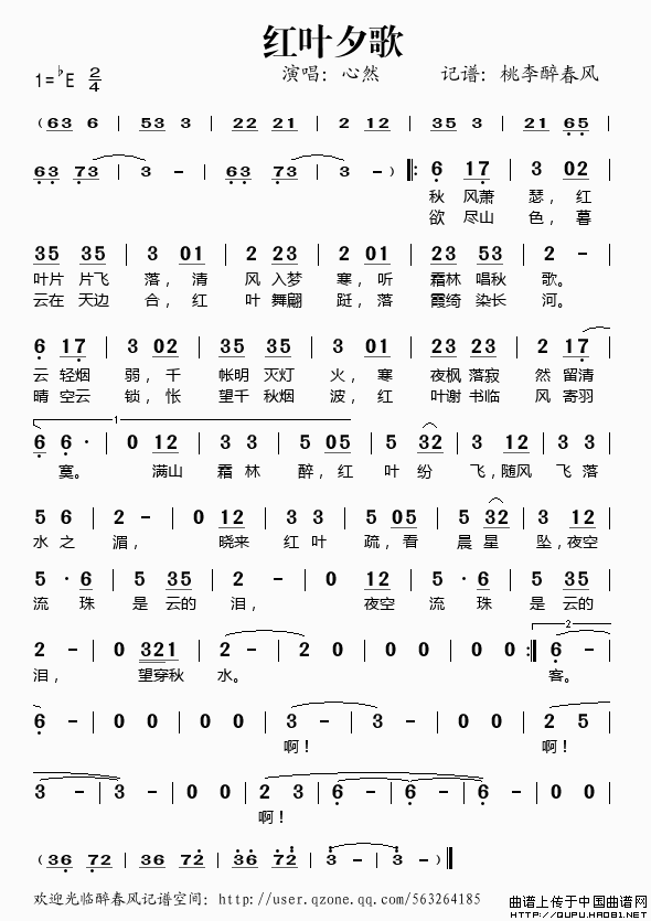 关于《红叶夕歌》曲谱的评论