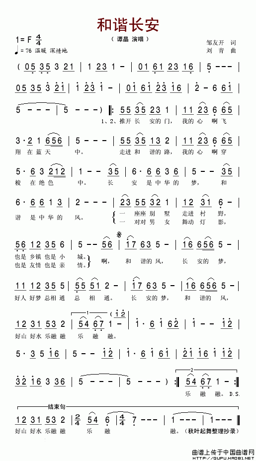 关于《和谐长安》曲谱的评论