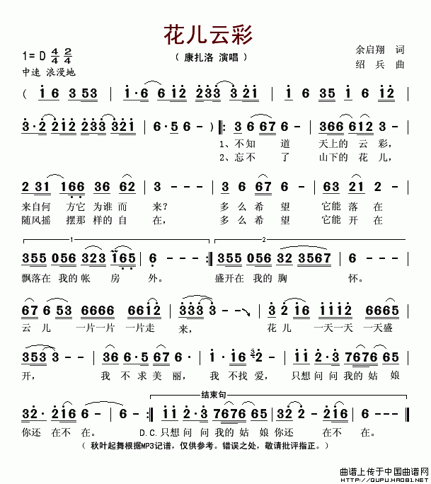 作词:余启翔   作曲:绍兵   演唱(奏):康扎洛   格式:简谱   来源:秋叶起舞 记谱上传   上传:秋叶起舞   日期:2010-06-20   浏览次数: