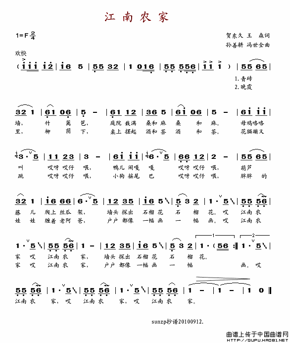 江南农家(贺东久 王森词 孙善耕 冯世全曲)