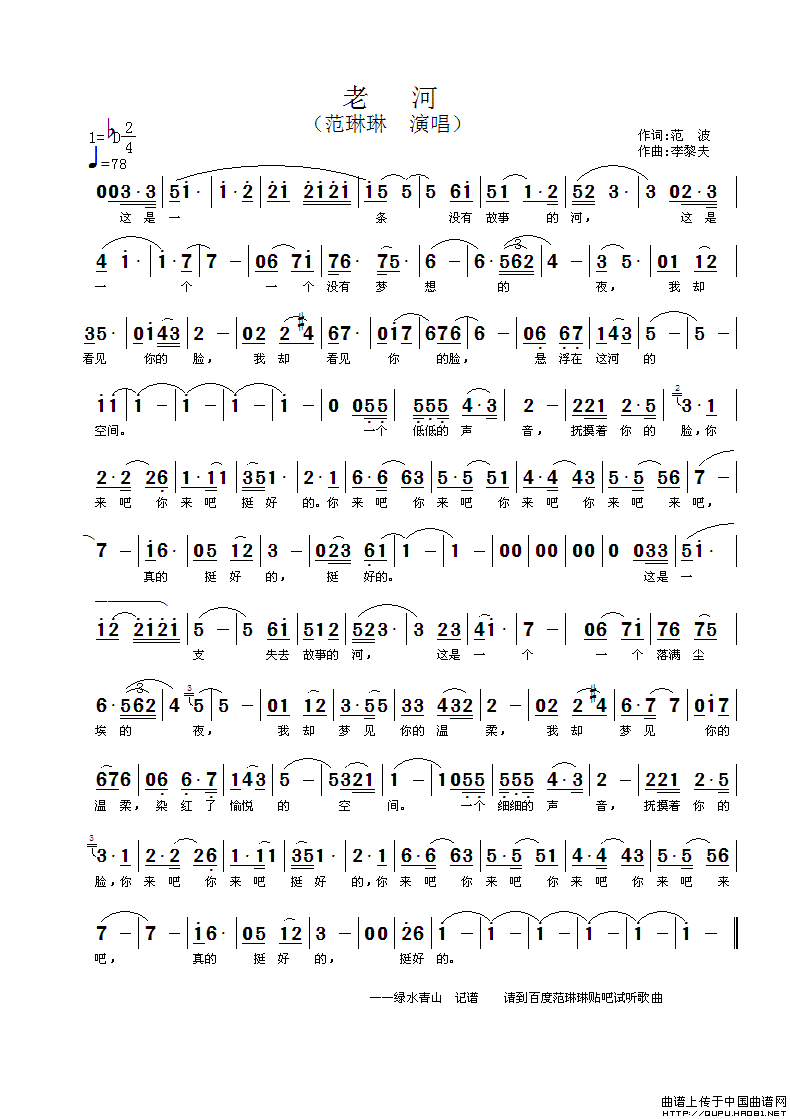 作词:范波   作曲:李黎夫   演唱(奏):范琳琳   格式:简谱   来源:谱友绿水青山   上传:绿水青山   日期:2011-09-30   浏览次数: