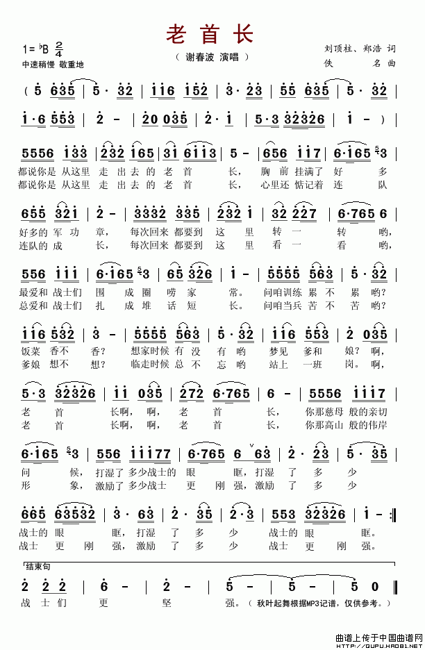 老首长(刘顶柱、郑浩词 一鸣曲)