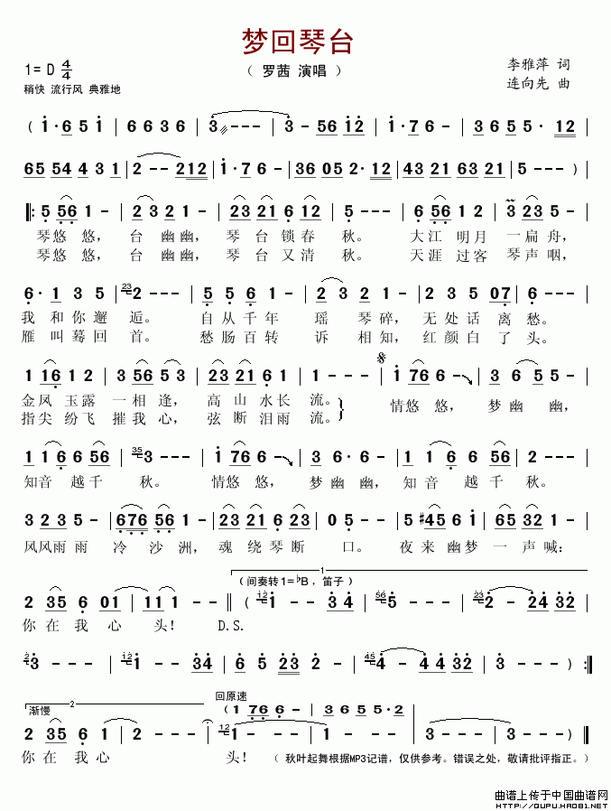 阳春三月,梦回琴台,知音相见,情绕心泉。这是一曲婉转而唯美、清雅而悠远、沧桑而豪迈的中国风流行歌曲。北京歌手罗茜酷似田震风格,独具魅力、酣畅淋漓的演唱让我们耳目一新。