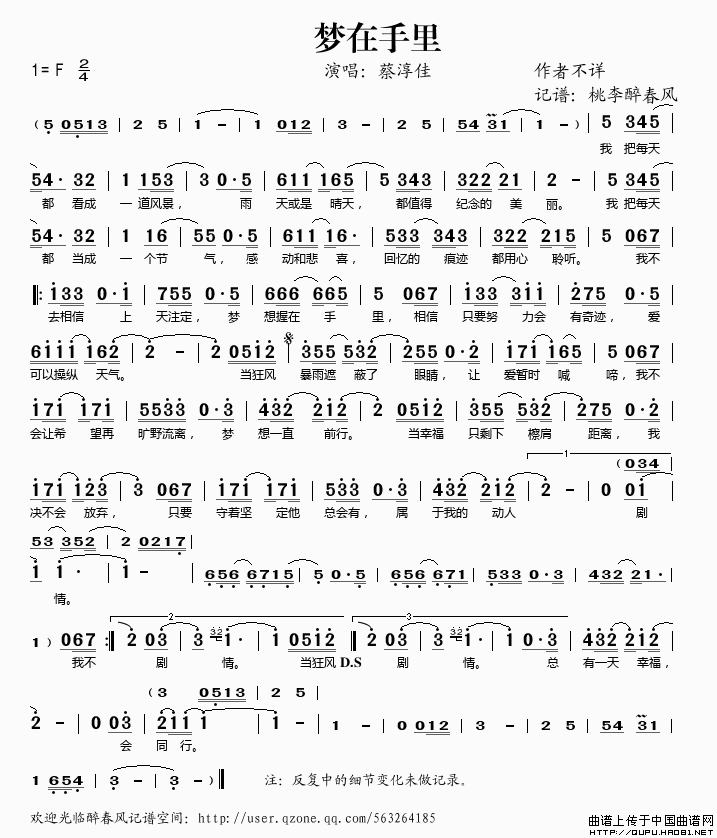关于《梦在手里》曲谱的评论