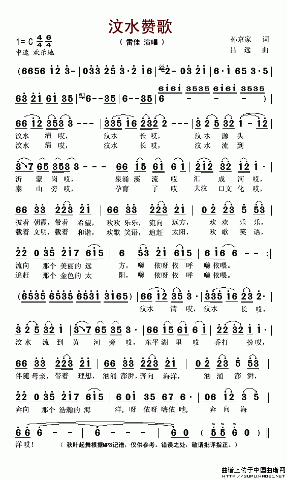 关于《汶水赞歌》曲谱的评论